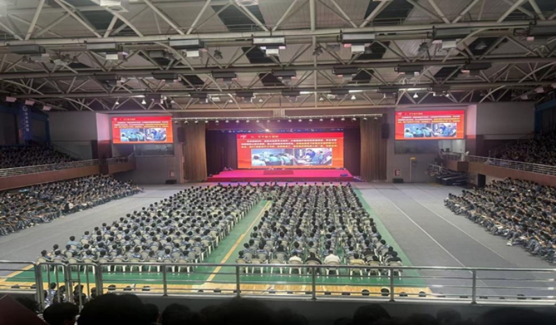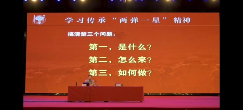2025 年 9 月 17 日晚,冰球突破豪华版官方网站体育馆内座无虚席。工程技术学院杜超院长、辅导员及 2025 级全体新生,共同聆听了马兰基地原政委、“两弹一星” 历史研究会常务副理事长孔令才少将所作的 “学思践悟‘两弹一星’精神,争做堪当民族复兴重任的时代新人” 主题报告,一场兼具历史厚重感与思政引领性的精神洗礼亦在此温情启幕。