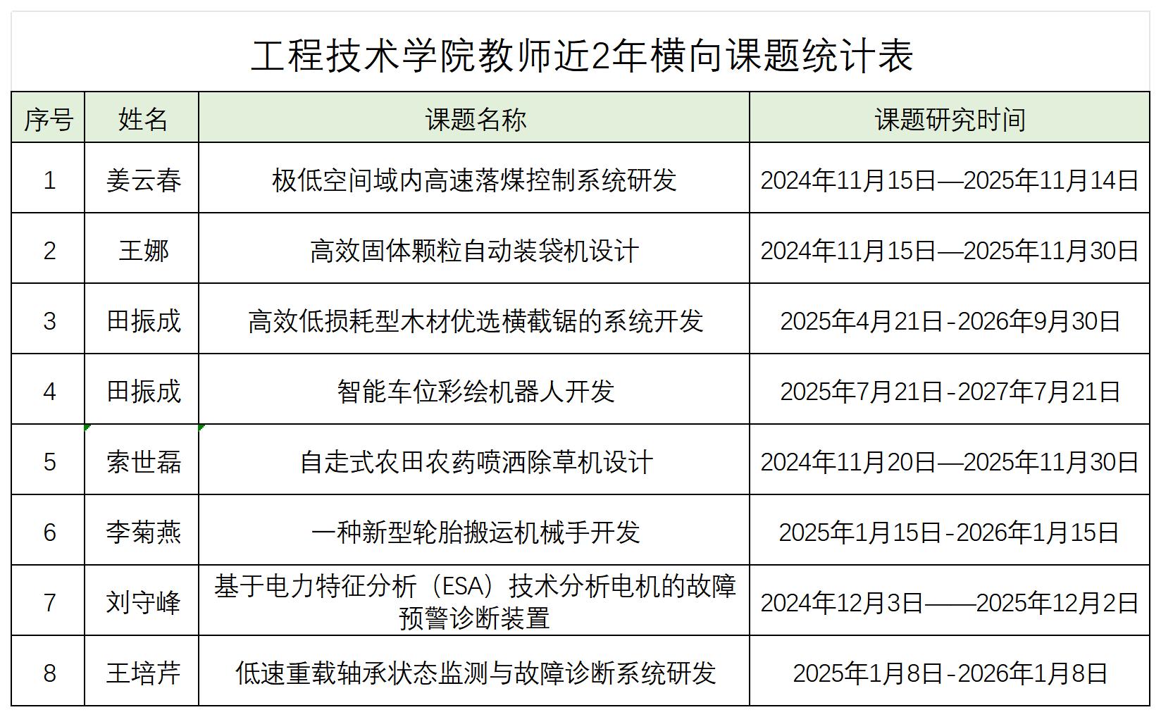 工程技术学院教师近2年横向课题统计表