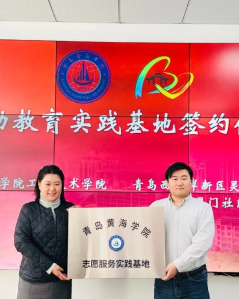 协议签订后,双方举行了“劳动教育实践基地”揭牌仪式,这既是黄海学院对社区实践育人阵地价值的认可,更是校社携手深耕劳动教育、共育时代新人的责任象征,也是党建共建好邻居并肩前行的有力见证。双方将共同精心搭建劳动教育实践平台,推动校社资源深度融合,实现高校学子与辖区学生群体的双向融合、双向奔赴,在社会实践和志愿服务中锤炼品格、增长才干。