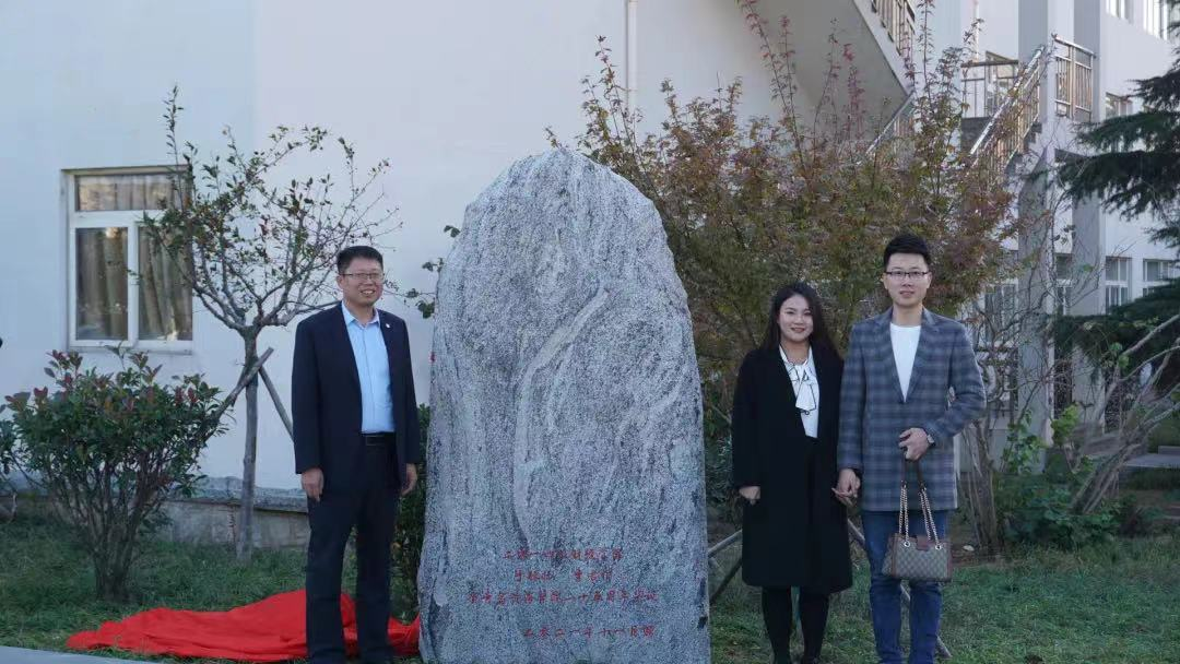 母校25周年校庆期间,他与爱人李君俏(2014级财经学院学生,在校曾任财经学院学生会文艺部部长、蓝韵民族舞协会团长)回到母校,参加母校25周年校庆,并捐赠泰山石,感谢母校的平台、学院的栽培、恩师的教诲。对黄海学院所有的教师工作者致以崇高的敬意以及真诚的感谢!
