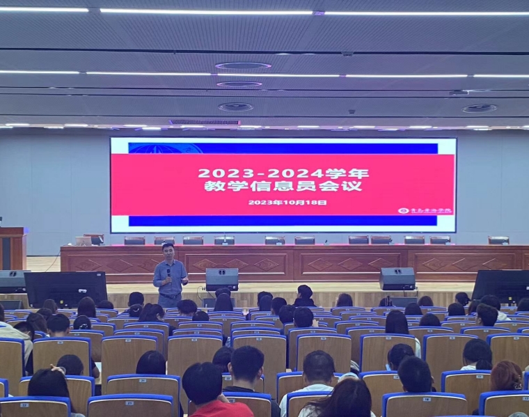 2023年10月18日下午,2023-2024学年学生教学信息员会议在知信楼B01报告厅举行,来自各学院的300余名学生教学信息员到场参会,质量监控与评估中心副主任郭均栋出席会议。