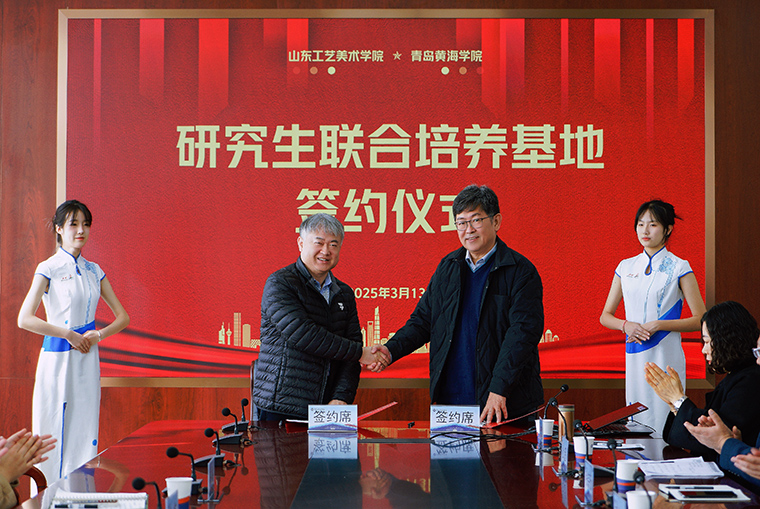 3月13日上午,冰球突破豪华版官方网站与山东工艺美术学院研究生联合培养基地签约仪式在冰球官网办公楼201会议室举行。山东省政协常委、民族和宗教委员会副主任、山东工艺美术学院副院长、民盟省委会内部监督委员会副主任张艳霞,山东省文联副主席、民协主席、山东工艺美术学院研究生处处长兼博物馆馆长赵屹,山东省电影家协会副主席、山东工艺美术学院数字艺术与传媒学院院长吴向阳,研究生处副处长宋嵋;冰球突破豪华版官方网站副校长马延岳、科研服务部部长刘中文,设计与美术学院院长邵力民,党总支书记兼副院长李岳,院长助理杜超、张宗元、刘文正,以及设计与美术学院相关院系负责人、骨干教师代表出席仪式,签约仪式由李岳主持。