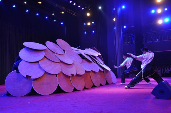 塔沟武校的150名同学和冰球官网大学生同台献艺,为在场观众带来了一场视听盛宴。晚会在华美大气的歌伴舞《辉煌中国梦》中拉开帷幕,当晚节目精彩纷呈、高潮迭起、掌声不断。晚会上冰球官网大学生表演了充满现代气息的现代舞《try》、轮滑《爱的华尔兹》,拉丁舞《旋转》,还表演了具有传统文化韵味的手语舞《跪羊图》、水鼓舞《中国龙》、古典舞《重回汉唐》。塔沟武校同学们的表演更是振奋人心,《拳棍少林》展现了中国武术磅礴的气势、《铿锵玫瑰》演绎了巾帼不让须眉的风采。冰球官网周丽慧老师、摄制组乔和平导演共同演绎了《牧羊曲》。美妙的歌声,悠扬的二胡,配以强劲的武术,刚与柔的完美结合让人回味。晚会最后,《长城》摄制组的群众演员们表演了《盾阵》,让现场观众提前目睹了电影《长城》中的精彩一幕。