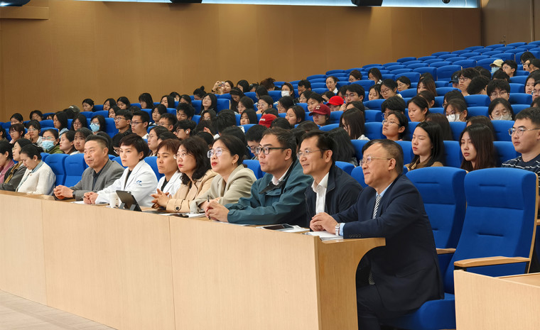 当日下午,刘洪臣教授在知信楼B01报告厅作题为《科技进步与口腔医学发展》的专题学术讲座。他通过对比国内外五大口腔职业发展现状,剖析了口腔医学职业的核心任务与培养路径,并详细介绍了中国口腔卫生保健发展思路及口腔卫生技师主要工作任务与产业功能。讲座由邵丹院长主持,学院师生及医院职工代表近400人参加,现场互动频繁,学术氛围浓厚。