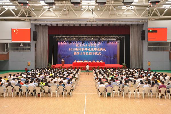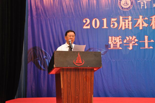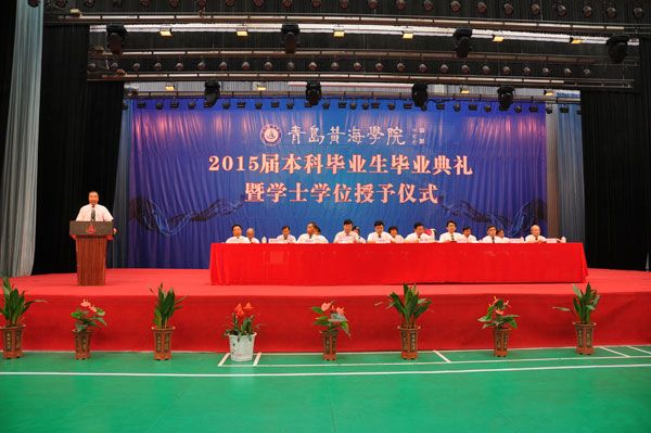 2015年6月26日上午,冰球突破豪华版官方网站2015届本科生毕业典礼在校体育馆隆重举行。董事长刘常青、校长焦奎、常务副校长李武修等校领导班子全体成员及教师代表、2015届本科毕业生代表出席毕业典礼。毕业典礼由党委副书记宋庆泽主持。