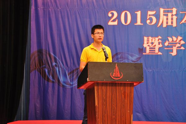 交通与船舶工程学院曹绪祥同学代表毕业生发言,他代表2011级全体同学感谢母校和老师四年来的悉心教导和精心栽培。教师代表李红英老师代表教师发言,祝福毕业生在社会这所大学校里成长成才,为母校增光。