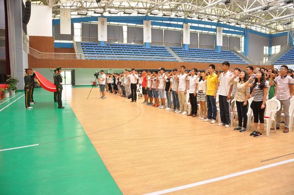 全体毕业生在庄严的国旗下宣誓,牢记母校教诲,拥护中国共产党的领导,热爱社会主义祖国,遵守宪法和法律,恪守社会公德,秉承知行合一的校训,勤奋学习,追求真知,诚实守信,友爱善良,爱岗敬业,奉献社会,为母校的进步和发展,为实现中华民族伟大复兴的中国梦,奋斗终生!
