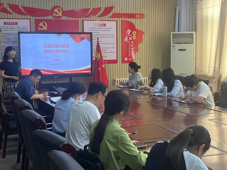 为深入贯彻落实全面从严治党要求,强化党员教师纪律意识和法治观念,语言文化学院教师党支部于6月9日下午在知诚楼214组织召开警示教育专题学习会。会议由支部委员吴佳峰和孟岩梅同志主持,通过通报和解读典型违纪违法案例,结合党规党纪和相关法律法规开展警示教育,进一步增强党员教师的纪律意识和政治定力。