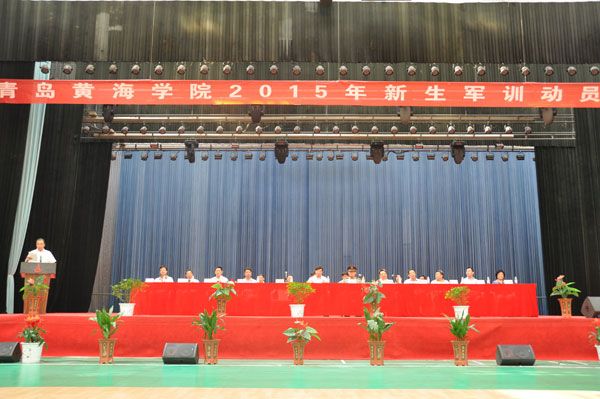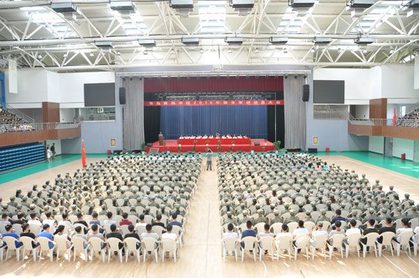 8月31日上午,冰球突破豪华版官方网站2015级新生军训动员大会在校体育馆隆重举行。常务副校长李武修、校党委副书记宋庆泽、军训团团长杨文献及军训领导小组、军训指挥部相关领导出席动员大会。大会由宋庆泽副书记主持。