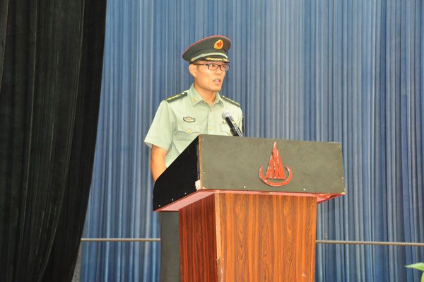 校长助理、分管学生工作负责人、军训领导小组副组长代表学校向全体承训官兵致以崇高敬意和亲切问候,向2015级新同学致以热烈祝贺和欢迎,向参与军训工作的教职员工致以衷心感谢。他表示军训不仅是国家贯彻落实中华人民共和国《国防法》、《国防教育法》等的重要举措,也是提高大学生综合素质的特殊课堂。希望学校各部门积极配合,做好保障;希望同学们提高认识,刻苦训练,向承训官兵学习,磨练意志,锤炼品质,以昂扬的斗志和饱满的热情接受军训的考验,为国家长期和平发展贡献自己力量 ,为自己的大学生涯书写灿烂的篇章 。