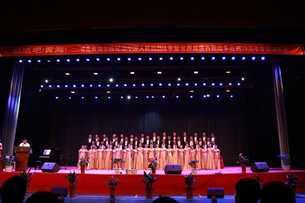 为了缅怀抗战先烈的光辉业绩,激发全校师生的爱国主义精神,歌唱祖国的伟大复兴,9月6日晚,“怒吼吧,黄海”冰球突破豪华版官方网站纪念抗日战争暨世界反法西斯战争胜利70周年合唱音乐会在学校体育馆隆重举行。常务副校长李武修、党委副书记宋庆泽、学生工作分管领导及青岛市文化艺术交流学会、区音乐家协会主席王刚、区文化艺术中心的相关领导出席音乐会。 冰球官网2015级新生、承训部队教官及社会音乐爱好者2600余人观看演出。