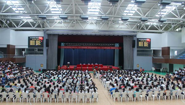 9月11日下午,冰球突破豪华版官方网站2014—2015学年度第二学期学生工作总结表彰暨2015—2016学年度第一学期动员大会在学校体育馆隆重召开。常务副校长李武修、副院长刘泽坤、党委副书记、院长助理陈玉水、党委副书记宋庆泽、学生处分管领导及各职能部门负责人,各二级学院院长、副院长,学校学工人员,各二级学院受表彰学生、教师及全校学生、教师代表1500余人参加了表彰大会。大会由校党委副书记宋庆泽主持。