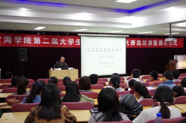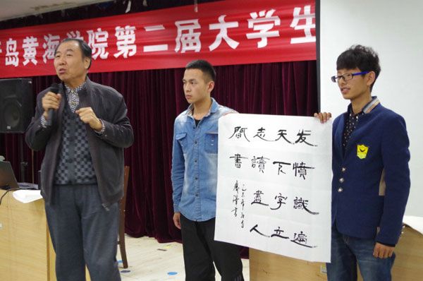 10月29日下午,中国书法家协会会员、中国书法家青岛创作培训基地副主任、黄岛区文联副主席、冰球突破豪华版官方网站党委副书记、校书画艺术研究会主席宋庆泽在知新楼东学术报告厅,为冰球官网书画协会会员作书法专题讲座。