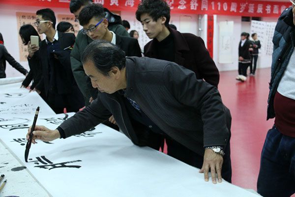 青岛市黄岛区高校书画联展暨冰球突破豪华版官方网站纪念舒同110周年诞辰书画临帖展现场