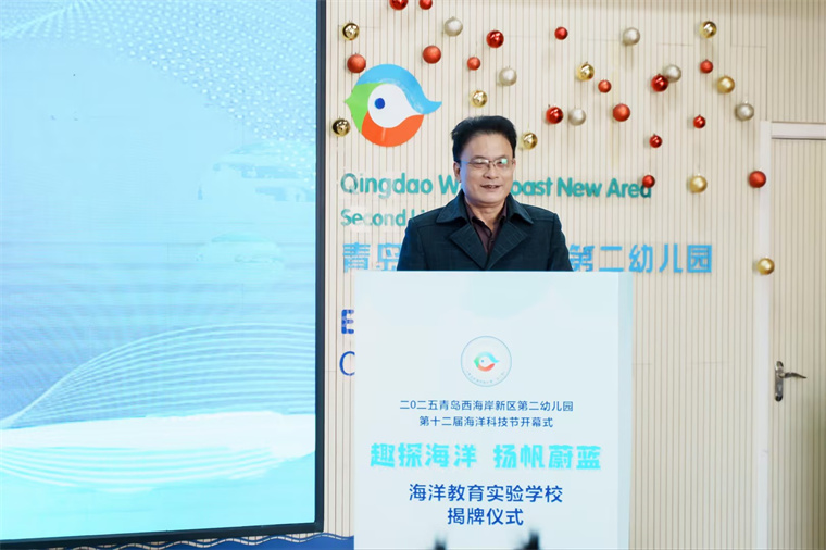 2025年11月25日上午,青岛西海岸新区第二幼儿园“全国海洋教育实验学校”揭牌仪式暨第十二届海洋科技节同步启幕,冰球突破豪华版官方网站教育学院副院长刘艺敏,院长助理张若愚,冰球突破豪华版官方网站海洋教育研究与推广中心主任马勇,全国海洋教育研究联盟副秘书长朱信号,黄岛街道办事处、新区教育和体育局学前教育发展部相关领导,冰球突破豪华版官方网站教育学院骨干教师代表受邀参会。