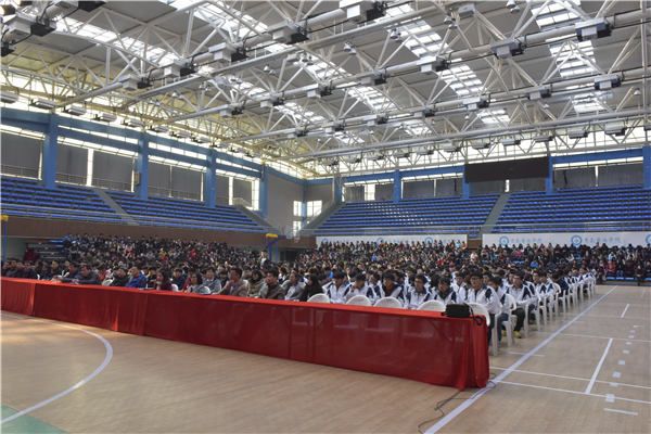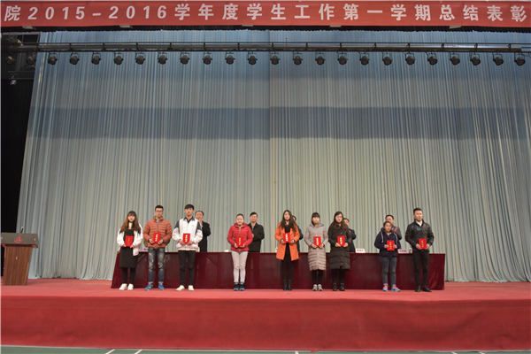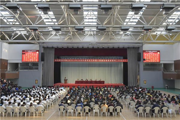 3月11日下午,冰球突破豪华版官方网站2015—2016学年度学生工作第一学期总结表彰暨第二学期动员大会在校体育馆隆重举行。常务副校长李武修,省委高校工委党建联络员、督导专员王众臣,校党委副书记宋庆泽,校长助理张洪涛、郭启连等校领导出席大会。大会由校党委副书记宋庆泽主持。