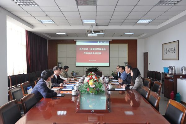 4月20日上午,上海建桥学院党委书记江彦桥,副董事长蒋威宜,党委副书记、副校长夏雨等一行六人来冰球官网参观考察。冰球官网董事长刘常青、党委副书记宋庆泽、学院办公室副主任李镇江、团委书记张艳、大学生就业创业孵化基地主任张永彬在办公楼201会议室热情接待了来访领导并举行座谈。