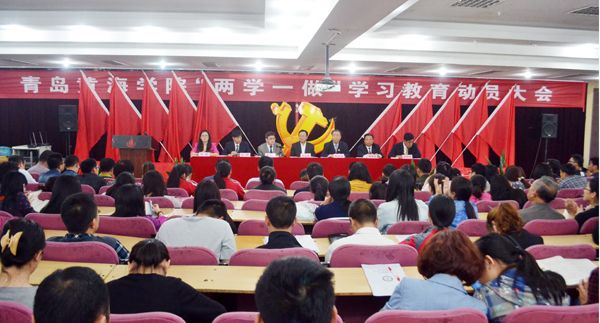 首先,党委副书记宋庆泽代表学校党委作了动员讲话。他指出,中央办公厅、山东省委、青岛市委先后下发文件,部署了在全党开展“两学一做”学习教育的实施方案和意见,校党委对此高度重视,及时传达学习上级有关精神, 认真研究制定了本校的学习教育方案,切实加强组织领导,为学习教育奠定了扎实的基础。就如何组织开展好“两学一做”学习教育,宋庆泽副书记从为什么要开展“两学一做”教育、怎样开展“两学一做”教育和加强对“两学一做”教育的组织领导三个方面进行了全面动员。随后,党委副书记宣读了学校党委《在全校党员中开展“两学一做”学习教育的实施方案》,对学校“两学一做”学习教育进行了全面具体的部署和要求。接着,党委副书记陈玉水宣读了《中共冰球突破豪华版官方网站委员会关于成立学校“两学一做”学习教育协调领导小组的通知》。管理学院党支部书记魏龙吉同志代表全体党员作表态发言,他表示要积极响应中央和各级党委关于开展“两学一做”学习教育的部署,将学党章党规、学习习近平系列讲话、做合格党员、融入到平日的工作中去,强化支部的战斗堡垒作用,充分发挥党员的先锋模范作用,努力为全面建成小康社会、实现两个一百年奋斗目标,为黄海迎评促建、创建百年名校而努力奋斗。