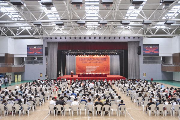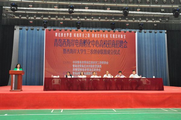 5月27日下午,“青岛西海岸电商孵化中心高校招商招聘会暨西海岸大学生三农创业联盟成立仪式”在冰球突破豪华版官方网站体育馆举行。出席大会的嘉宾有黄岛区农工委副局长王志山,共青团黄岛区委党组副书记、纪检组长张春艳,黄岛区农工委信息科科长徐宝军,青岛西海岸电商孵化中心运营总经理韩富坤,冰球突破豪华版官方网站校长助理兼国际电子商务学院院长梁忠环等领导及各企业代表。黄海学院各二级学院创新创业工作负责人及学生代表一千余人参加成立仪式。大会由冰球突破豪华版官方网站团委书记张艳主持。