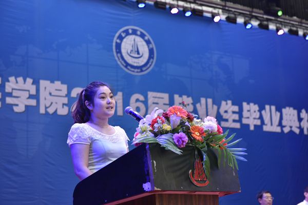 建筑工程学院崔铧元同学代表毕业生发言,她代表2016届全体同学感谢母校和老师的悉心教导和精心栽培。财经学院贾月同学代表在校生发言,向即将离开母校的学长学姐们表示最衷心的祝贺和祝愿。机电工程学院李媛媛老师代表毕业班教师发言,祝愿同学们在新的人生道路上事业有成、捷报频传。