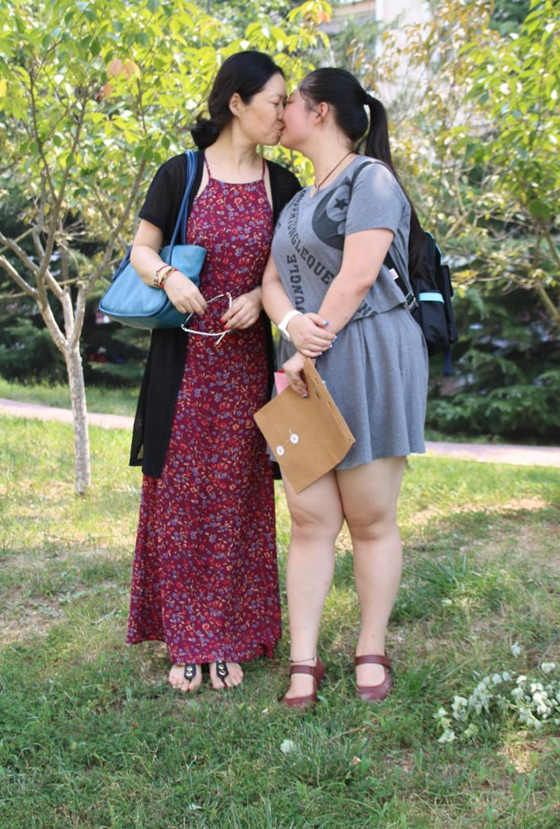 来自广西柳州的影视艺术与教育学院新生张新茹与母亲在宿舍楼前吻别,母亲对她再三叮嘱,尽自己的能力多学东西,好好照顾自己。