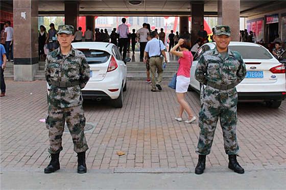 黄海学院迎新现场,教官为你站岗