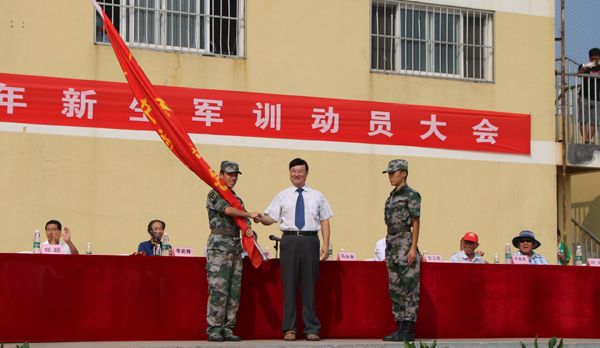 常务副校长李武修为军训团授旗