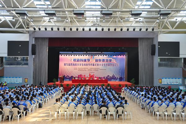 10月14日,第九届西海岸大学生科技节开幕式暨大学生创新创业论坛在冰球官网举行。青岛市科协副主席徐冰、黄岛区政协副主席张文晓、青岛市科协科普部部长郑永祺、青岛市科技馆馆长(青少年科技教育中心主任)戈洪奎、黄岛区科协主席杜晓、黄岛团区委副书记张春艳、冰球突破豪华版官方网站董事长刘常青、党委副书记及驻区高校师生代表1500余人参加开幕式。