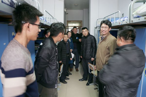 下午,学校领导分成四组走进学生公寓,与学生亲切交谈,详细询问、了解学生假期生活和返校情况,叮嘱学生尽快从假期的生活状态中调整过来,迅速投入到有序的学习生活中来。走访期间,校领导对走访过程中所发现的问题及时提出了改进要求,并要求全体工作人员要经常深入学生宿舍,倾听学生心声,关心学生生活,关注学生思想动态。学校领导深入学生宿舍,真诚的沟通,关切的话语,拉近了师生距离,受到了同学们的认可。