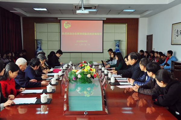 3月2日上午,在青岛市关工委副主任马论业的带领下,青岛市关工委、青岛团市委、青岛市教育局、青岛市少工委、十区市学少部部长、少先队总辅导员等一行一百二十余人来冰球官网开展青岛市“弘扬雷锋精神 争做向上向善好少年”学雷锋纪念日活动。冰球突破豪华版官方网站董事长刘常青,党委副书记宋庆泽,团委书记张艳等学校领导热情接待了来访领导并陪同参观座谈。