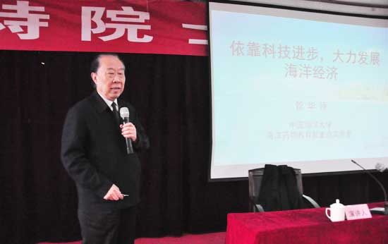 报告最后,管华诗院士对我国海洋产业发展概况做了介绍并予以展望。管华诗院士强调海洋经济对经济发展的重要作用不仅仅在于海洋经济本身,更在于它对区域经济发展巨大的支撑与带动作用。进入21世纪,我们要以全新的观念重新认识海洋,开发海洋。这必将对人类社会带来巨大变革。实现海洋是人类赖以生存的第二疆土的认识,关键在于科技进步!