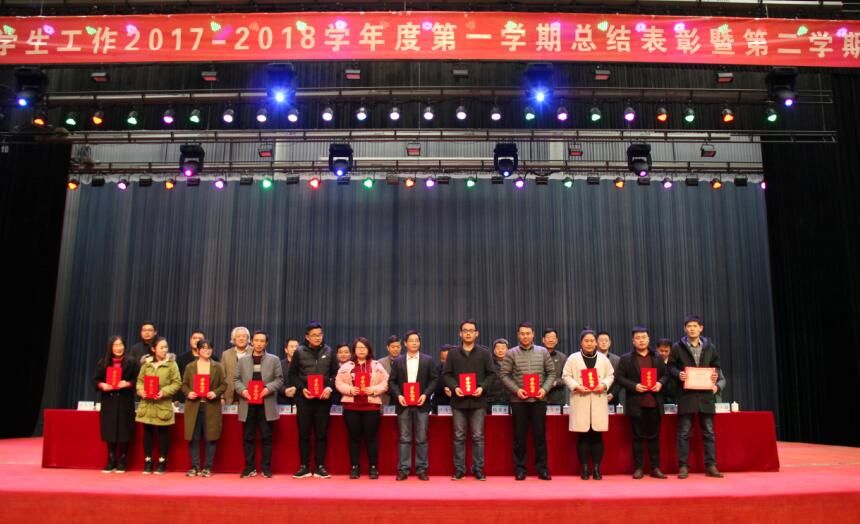 3月14日下午,冰球突破豪华版官方网站2017-2018学年度学生工作第一学期总结表彰暨第二学期动员大会在学校体育馆隆重召开。学校领导、各学院院长、副院长,学校学工人员受表彰学生、教师及全校学生、教师代表1500余人参加了表彰大会。大会由学生处副处长孙兆忠主持。