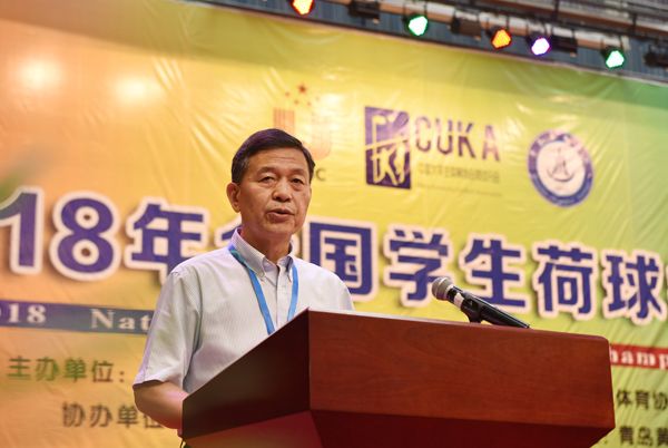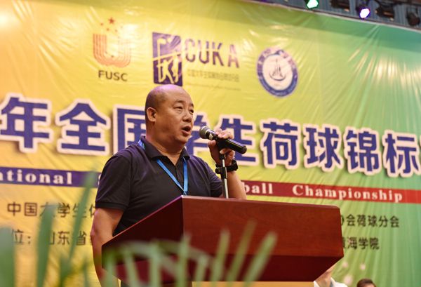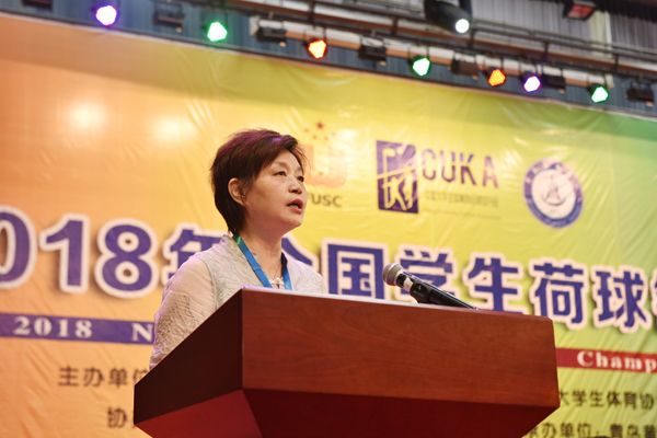 中国大学生体育协会荷球分会秘书长黄津虹讲话