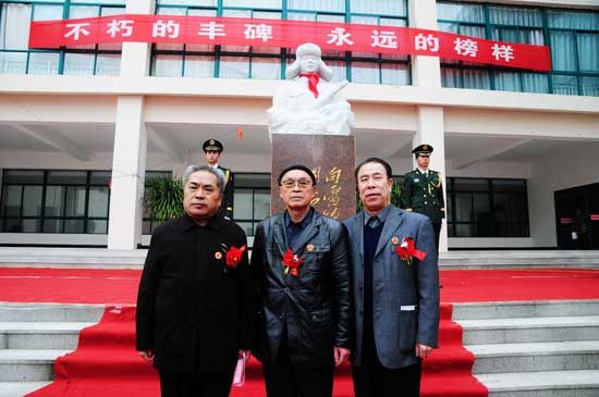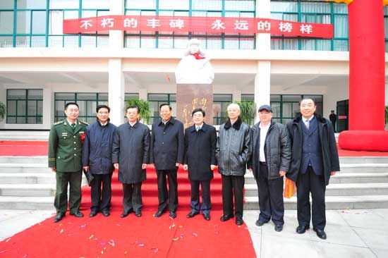 领导嘉宾在雷锋塑像揭幕仪式上剪彩