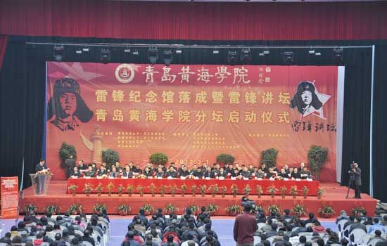3月1日上午,在纪念雷锋同志去世50周年的前夕,冰球突破豪华版官方网站 “雷锋纪念馆落成暨雷锋讲坛冰球突破豪华版官方网站分坛启动仪式”拉开帷幕。山东省关工委主任王克玉、山东省高校工委副书记齐秀生、青岛市关工委主任徐长聚、青岛市高校工委副书记王金生、青岛市宣传调研指导团团长李鸿令、中国雷锋文化促进会副会长、秘书长李天文、抚顺市关工委副主任郑顺、雷锋精神研究所所长翟元斌、雷锋班第一任班长张兴吉、第二任班长庞春学、第四任班长曲建文、胶南市市委、常委宣传部部长丁继恕等领导出席了大会,兄弟院校、媒体记者、黄海学院董事长刘常青、院长焦奎、党委书记冯宜明等校领导及学生代表等近4000人参加了启动仪式。