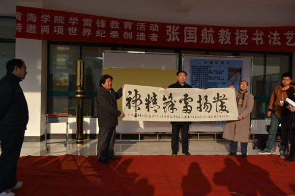 在开展仪式上,张国航教授现场书写了学雷锋主题语句,并教育学生把学习雷锋精神作为日常行为,加强自身的思想道德修养,让雷锋精神不断传承下去。张教授还通过自己的习书经历激发同学们传承中华文化的兴趣,坚定学好书法、练好书法的决心。