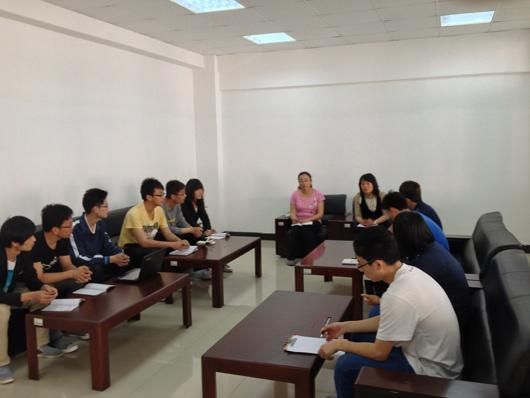 5月23日下午,在黄海学院体育馆接待室,召开了学生代表座谈会。体育教学部综合教研室主任岳伟、球类教研室主任赵磊和学生代表们进行现场交流答复。