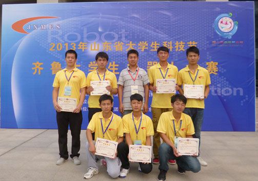 9月14日—15日,2013 年山东省大学生科技节——齐鲁大学生机器人大赛决赛在济南大学举行,冰球官网机电工程学院共有7项作品进入决赛,经过激烈的竞赛,最终获得一等奖2项,二等奖1项,三等奖4项。