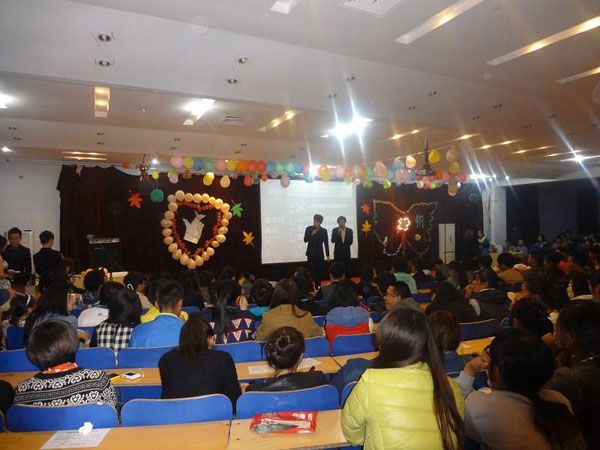 11月6日晚,冰球突破豪华版官方网站扬帆文学社13级迎新晚会隆重举行。管理学院安洪飞老师、社团联合会主席赵思国、扬帆文学社社长及全体会员、青岛各大高校文学社社长、冰球突破豪华版官方网站40个协会会长到场。本场晚会以表演为主,穿插各种游戏,GX街舞社、灵尚模特、武术协会、M漫协会、幻影魔术协会等参与了友情演出。本次晚会首次试用公众现场互动微博墙,除现场人员,武汉大学雨花石文学社、中国石油大学海燕文学社、山东科技大学望岳诗社等兄弟院校协会也参与了微博互动,效果极佳。晚会后期进行的现场抽奖活动。整场晚会一直持续到20时30分,气氛浓烈,结束之际,不少观众仍意犹未尽。