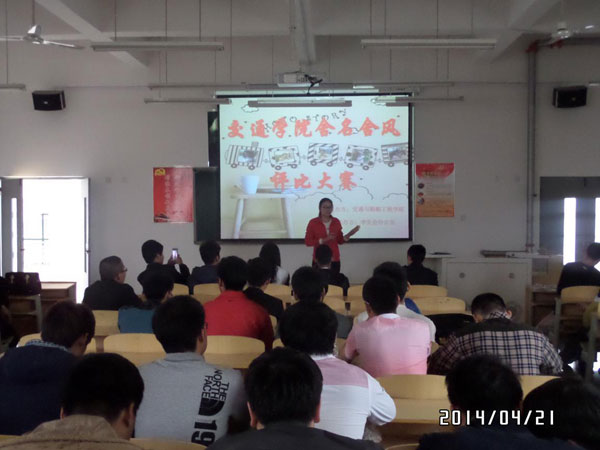 为丰富大学生校园文化生活,促进大学寝室的和谐与和睦,培养大学生语言表达能力,在交通与船舶工程学院学生会办公室的充分准备下,于4月21日下午在418多媒体教室举办了舍名舍风创意大赛。此次大赛是大学生“宿舍文化节”中具有积极意义的活动之一,在蔡芳萍老师的带领下比赛有序展开,参赛作品生动形象,展现出大学生更为朴实的一面。比赛过程精彩非凡,浓浓宿舍情展现其中。此次比赛的举办,进一步推进了舍友情的发展,能够营造出健康、文明、向上的宿舍氛围。
