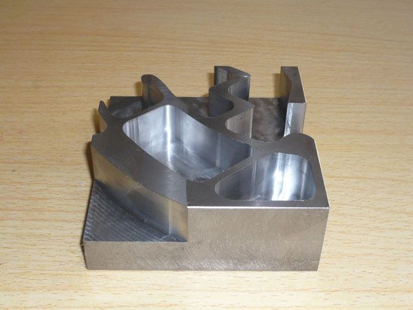 本次培训突出实践操作环节,以大赛试题为主线,进行了一个零件从造型、模型处理、参数设置、刀路生成模拟、后置处理、程序传输、机床加工的完整过程。图片二所示零件材料为45钢,用Powermill加工,选用4齿φ10国产硬质合金立铣刀、主轴转速4000r/min、进给量2000mm/mim,吃刀深度20mm,用时10分钟。传统加工策略约需要40分钟。通过与传统加工策略的对比,加深了师生对旋风铣削保持刀具与工件材料接触角度为46°功能的认识,亲身感受到数控加工技术中“工具”的重要作用,同时也深深体会到科学研究可以形成生产力的真谛。