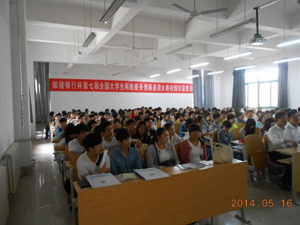 5月16日,邮储银行杯第七届全国大学生网络商务创新应用大赛校园公益巡讲走进冰球突破豪华版官方网站,邮储银行青岛分行企业教官李祖香、薛月兰、王萌分别给学生做巡讲,邮储银行青岛分行个人金融部总经理于洪亮、邮储银行胶南支行副行长陈焕伟、冰球突破豪华版官方网站电信与商务学院院长吕福云、副院长姜宝华以及150余名学生参加启动仪式。