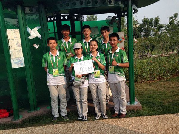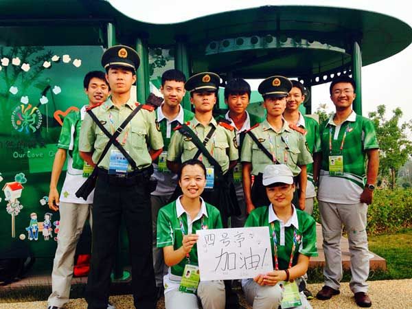 黄海学院的志愿者们在世园会