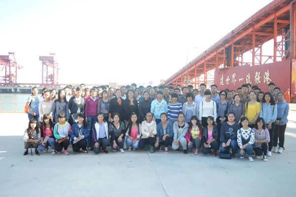 2014年10月10日下午,管理学院杨荣本院长带队,组织物流、报关、港口专业的学生和相关教师共110余人,到董家口港矿石、原油码头见习考察。