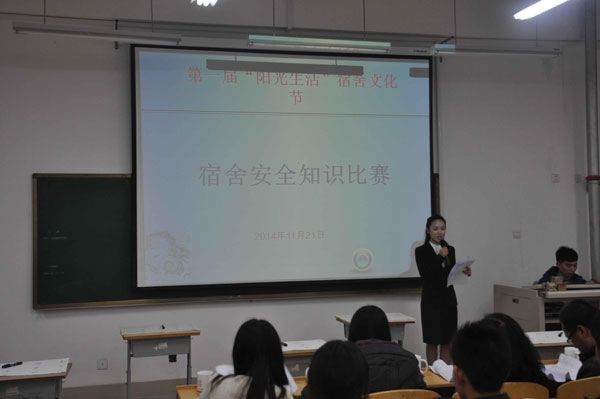 为提高学生安全意识,丰富学生课余生活,由学生处主办、学生会承办的宿舍安全知识大赛于11月21日晚在4号教学楼206教室举行。学生处副处长张永军,宿管科科长张佳珍出席活动,学生会各部成员、二级学院参赛选手及各学院学生代表200余人参加活动。比赛分为必答和抢答两部分。比赛竞争异常激烈,参赛选手发挥稳定,各院比分交替上升。最后,比赛在紧张、欢乐的气氛中圆满落幕。比赛结果将在12月份的宿舍文化节颁奖典礼上公布。