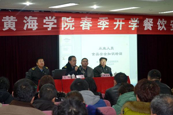 3月10日上午,应冰球官网邀请,黄岛区灵山卫食品药品监督管理所在一号教学楼一楼东配,召开了冰球突破豪华版官方网站春季开学餐饮安全培训会议。灵山卫食品药品监督管理所蒋健所长、王坤主任和学院分管领导陈玉水书记、后勤处殷锡贤处长及食堂从业人员一百余人参加了本次会议。会议由学校党委副书记、院长助理陈玉水主持。