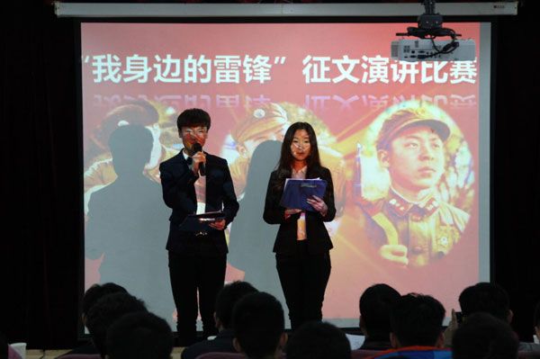 3月27日下午,伴随着观众们热烈的掌声,由学生处、团委主办,校学生会承办的 “我身边的雷锋”征文演讲比赛在一号教学楼一楼东配多媒体教室成功举行。学生处副处长张永军出席,各学院团总支书记和学生代表500余人参加活动。
