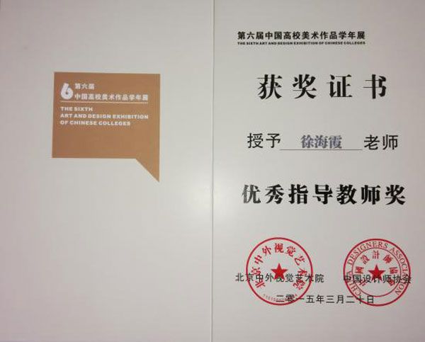 近日,中国美术网传来喜讯,人文教育与艺术学院在第六届全国高校美术学年展中成绩斐然。由中国美术研究院、中国设计师协会联合举办的第六届全国高校美术学年展于2014年12月24日在成都荣成美术馆举行,全国美术类高校优秀作品齐聚一堂。我院部分专业教师组织50多名学生参赛,获得优异的成绩和众多奖项。其中,二等奖2项,三等奖3项,优秀奖29项,徐海霞和崔京涛老师荣获优秀指导教师奖,冰球官网荣获第六届全国高校美术学年展团体二等奖。