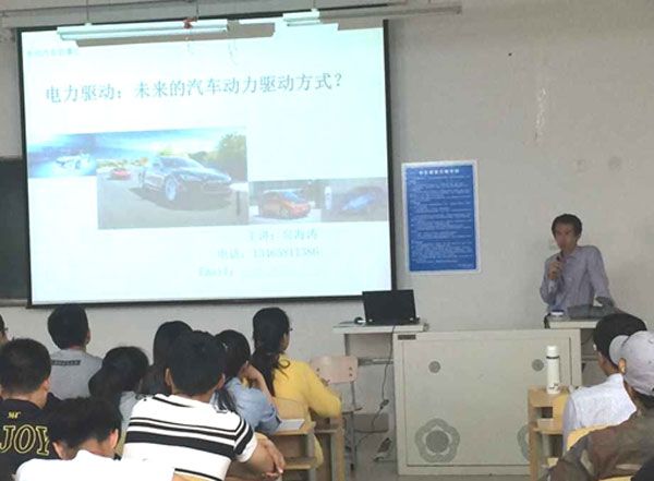 贠教授风趣幽默的讲授风格,引得师生一片喝彩,学生积极性也非常高,发言提问与贠教授进行交流。此次讲座让我院师生对电动汽车有了一个全面深刻的了解,开阔了学生的视野,同时也激起了学生学习汽车知识的兴趣。