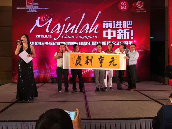 8月13号晚上18:30,“新加坡建国50周年暨中新建交25周年”庆祝晚会,在青岛市香格里拉大酒店盛世厅隆重举行。新加坡贸易及工业部政务部长、新加坡山东经济贸易理事会联合主席张思乐先生,青岛市副市长刘明君先生,山东省商务厅副厅长孙建波先生,新加坡商会山东分会、青岛市宣传部、莱西市、平度市、胶州市等相关领导出席庆祝晚会。